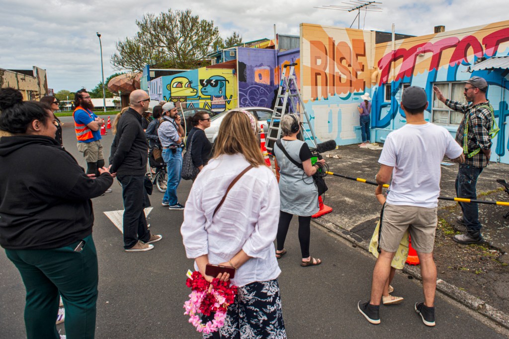 We’ve also grown to include services delivering events and activities, which is kind of new, kind of not. We have lots of experience doing this as contractors for other people, so it’s naturally become something we now do at Street Artearoa. We also love putting art on clothes, and we’ve created a few different designs for tees, hats, and totes, which we wish we could do more of, so stay tuned.