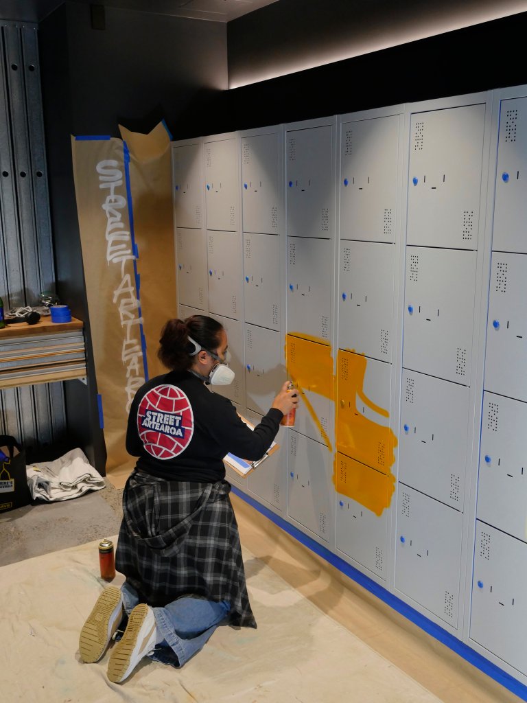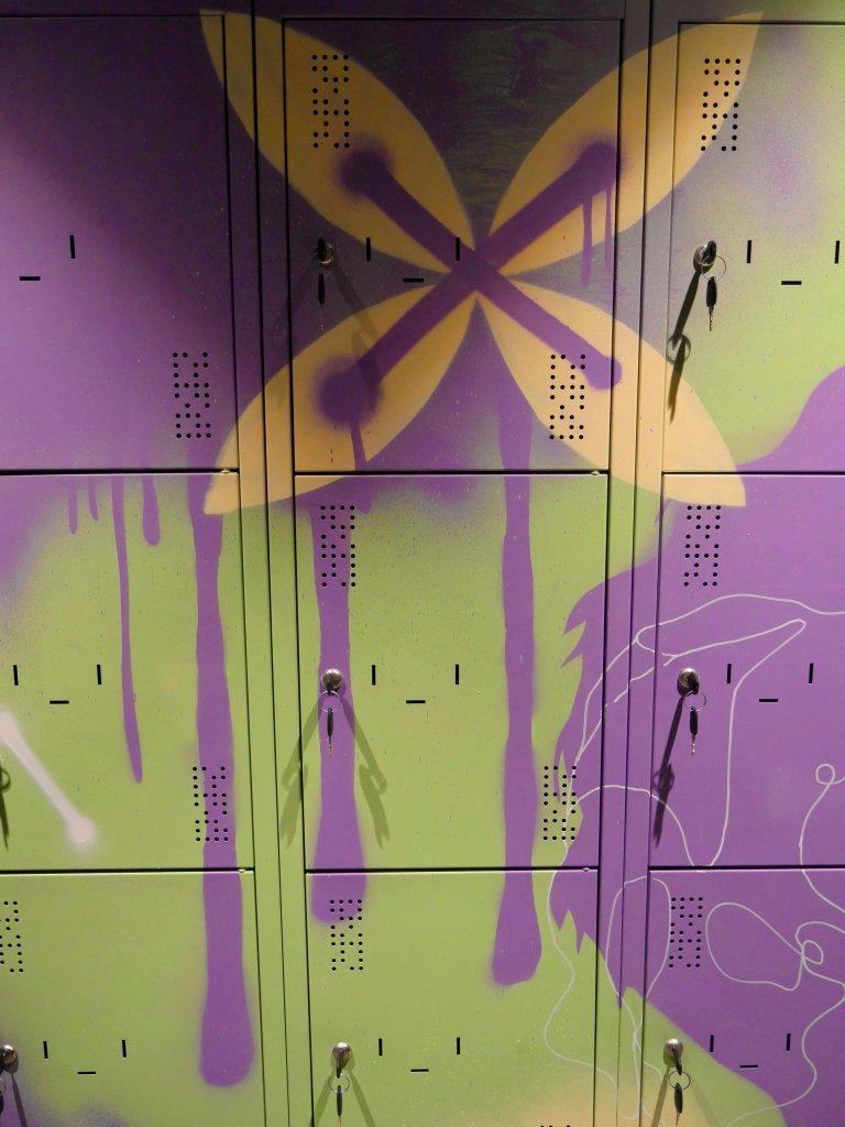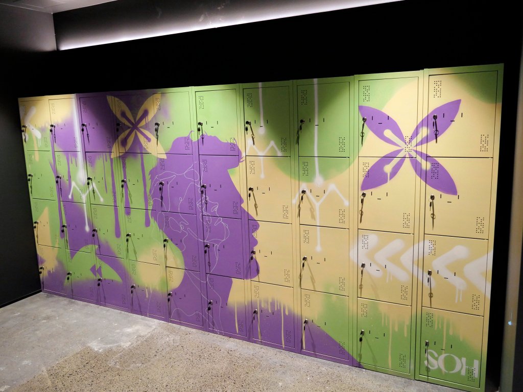 A new boutique, state-of-the-art fitness facility in Auckland wanted the lockers in their men’s and women’s bathrooms painted with a custom design that popped with colour amongst the dim lighting, aiming to create an inviting atmosphere that would energize and inspire members before and after their workouts.